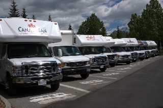 Als je s'morgens door Jasper loopt is het vrij rustig, tegen de middag komen de campers weer in grote getale binnen rijden.