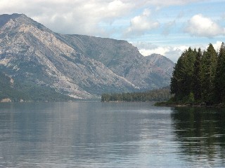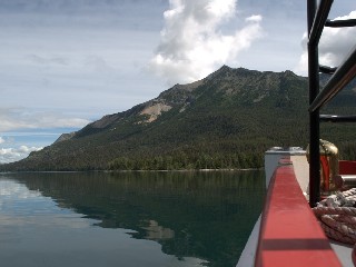 In de verte zie de bergen langzaam dichterbij komen en plotseling zit je er weer midden in. Erg mooi om te zien en in te verblijfen. Je kunt hier wandelroutes volgen van een half uur tot dagen lang lopen in de ongerepte natuur. Voor de langere tochten moet je wel op voorbereid zijn. Ook komen hier weer allerlij dieren voor herten, moos, zwarte en grizzlie beren. Wij zagen diverse mensen die gingen hiken met busjes pepperspray lopen, ook de parkwachter aan de Amerikaanse zijde. Ja we zijn ook in Amerika geweest tijdens de boottocht die we heben gemaakt. Je ziet aan beide zijden een kaal gemaakte strook bos lopen waar de grens is. Er staan twee grens paaltjes (foto links boven). Je kunt aan de Amerikaanse kant van de boot afstappen en beginnen met je wandeling in de bergen van Amerika, anders om kwamen er Amerikanen aan boord om in Canada verder te gaan met hun wandeling door de bergen. Zoals we al veel hebben gezien ook hier een erg mooie natuur.